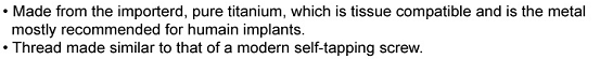 1.Made from the importerd,pure titanium, which is tissue compatible and is the metal mostly recommended for humain implants.