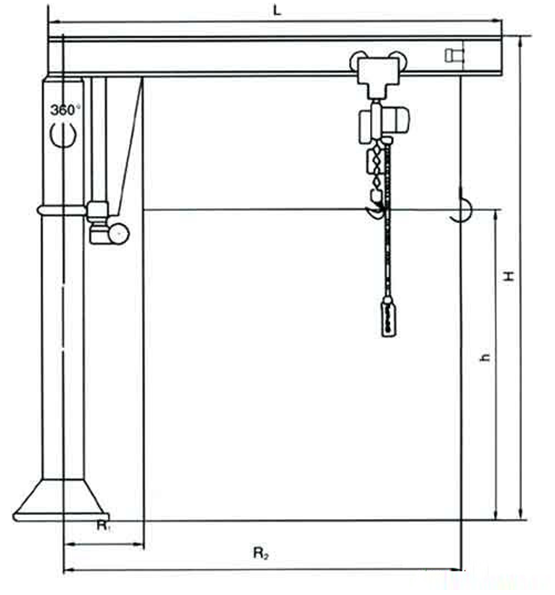 types of Jib cranes. The picture here shows a 2 ton free standing