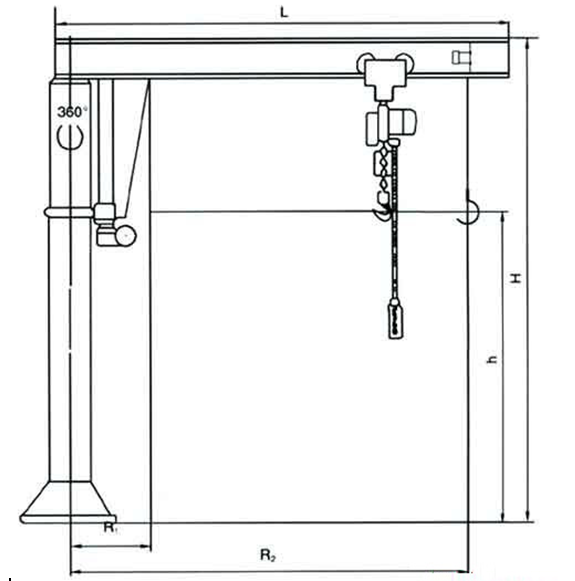 Floor Mounted Jib Crane is widely used to control or position a load in areas that are generally inaccessible to other material handling equipment. They are designed to provide reliable long-life performance with minimum maintenance. This jib crane provides 360-degree rotation our jib include taglines, festoon systems, collector ring assemblies and motorized rotation. The flexible move mechanism make you handle lifting tasks at ease. Motorized and Manual type as options for trolley travelling and Jib rotation.