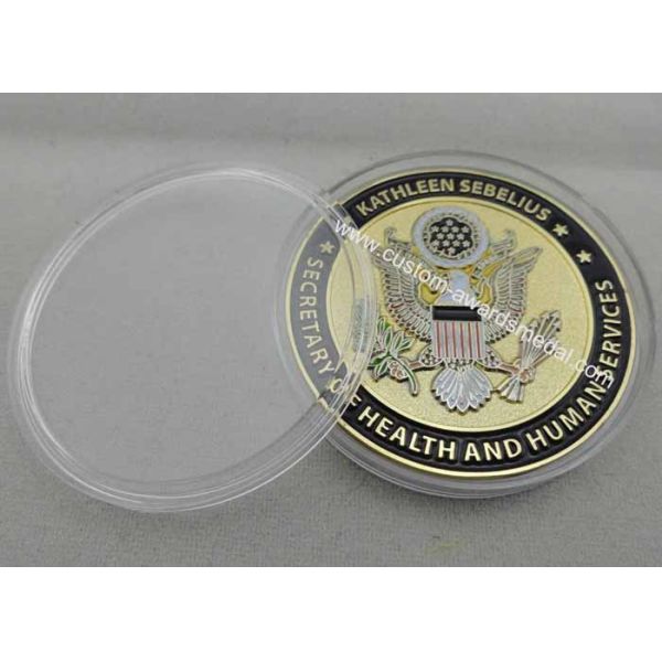 Gold Plating Zinc Alloy / Pewter / Brass American Health & Human Service Personalized Coins for awards