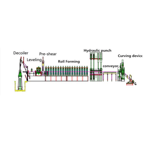 Loading coil car -> Un-coiler -> guiding device -> feeder