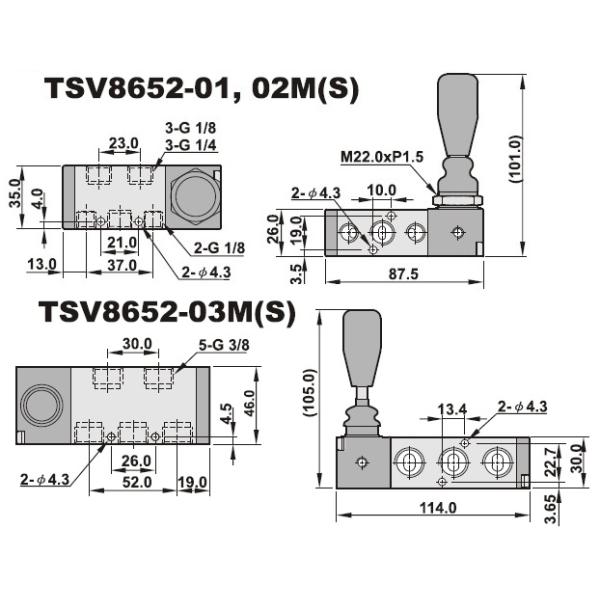 | TSV87532M | 1/4" | 5/3 way Mechanical Lock type |