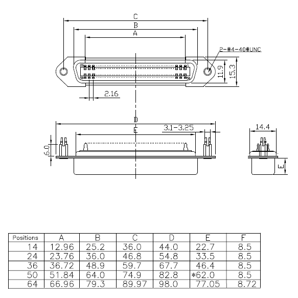 24 Pin Champ PCB Straight Receptacle Centronics Connector , Female Connector