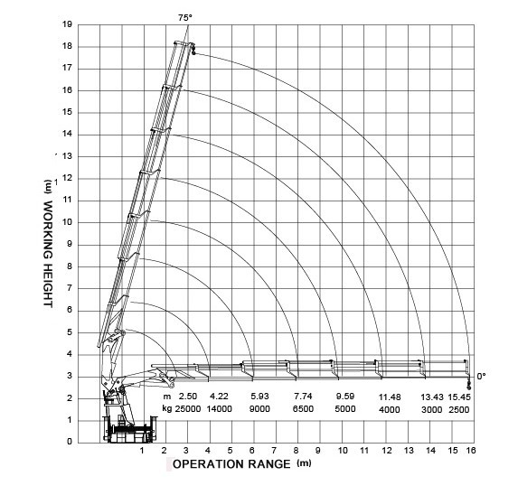 Working radius(m) | 2.5 | 4.22 | 5.93 | 7.74 | 9.59 | 11.48 | 13.43 | 15.45 |