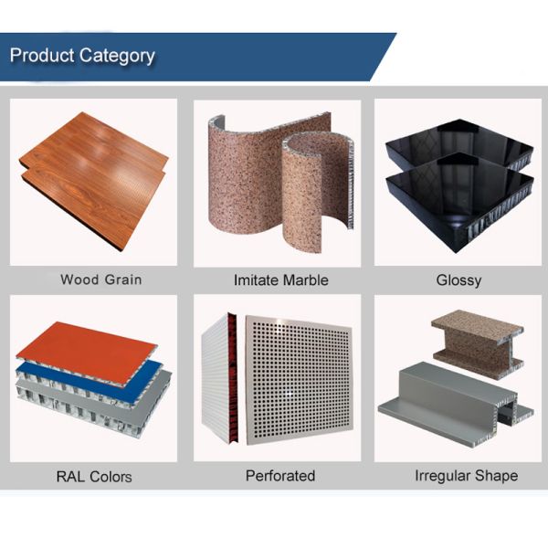 Aluminum Honeycomb Panel | Aluminum alloy | Standard thickness:10, 12, 15, 18, 20, 25mm; Custom made available | Fluorine carbon coated | Standard width:1220, 1250, 1500mm Length≤6000mm Width≤1500mm | Black / Stone, subject to user demand |