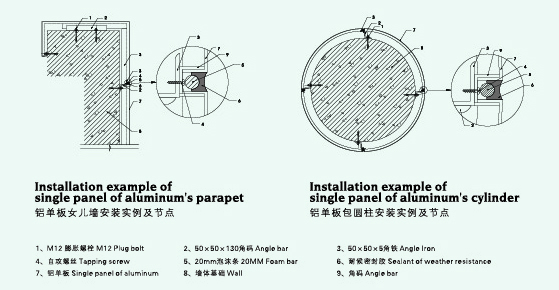 Aluminum Panel | rustproof high - strength alloy aluminum sheet | 2.0mm, 2.5mm, 3.0mm | multi - layer PVDF coating involving international known paints e.g. PPG(USA), AKZO- NOBEL, Valspa as base materials | Length≤6.0m Width≤1.8m | Reinforcement, hanger | Wooden, subject to user demand |