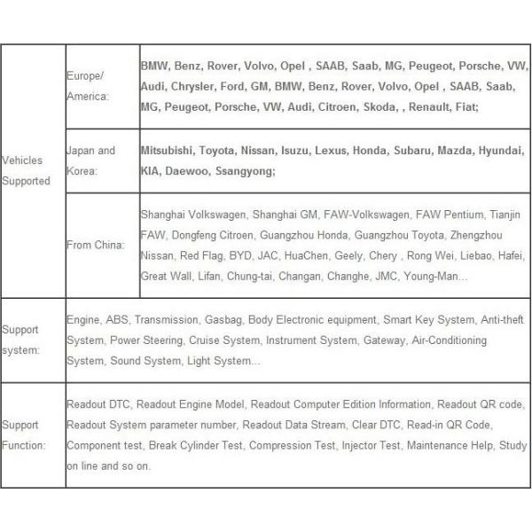Testing the global mainstream gasoline + 12V diesel vehicles, reaching to the same effect with the OEM scanners. Built-in high and low speed CAN-BUS,one diagnostic connector can test all the CAN-BUS vehicles. Support almost all OBD-II protocols.