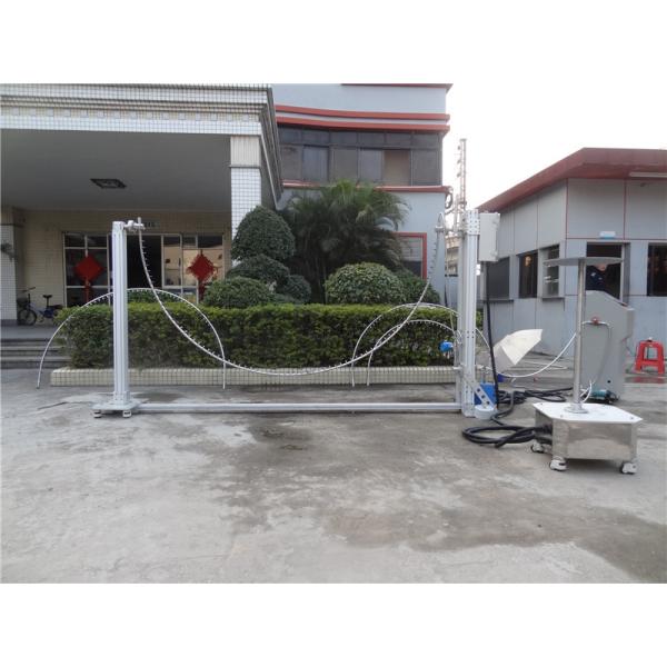Arched pendulum tube rain home appliance tester is mainly used for assessment of electrical and electronic products shell, seals in the water after the test, or whether the test period to ensure that the equipment and components in good working performance and technical state, while the product during transport or in use may be subject to flooding implications for product technical standards referenced basis. Applicable to natural conditions as the basis for artificial rain test, without a strong wind rain, without regard to specimens in high temperature and water temperature by the introduction of a lot of water.