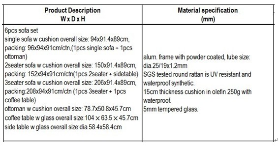 2. High quality PE rattan & power coated Aluminum or Steel frame & cushion