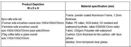 2. High quality PE rattan & power coated Aluminum or Steel frame & cushion