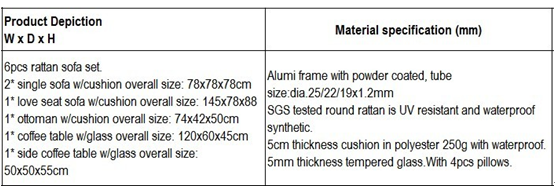 2. High quality PE rattan & power coated Aluminum or Steel frame & cushion