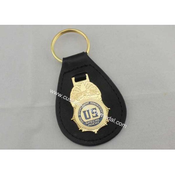 Brass Personalized Leather Keychains With Gold Plating , US Agent Leather Key Chain