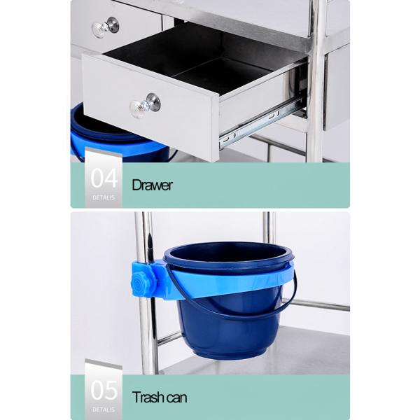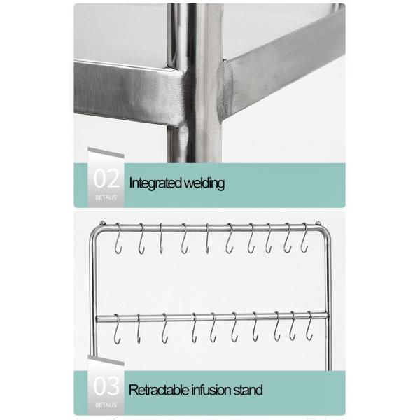 | Structure | Two frame with infusion hooks 4 silent wheels with cross brakes 2 drawer, 1 bucket |