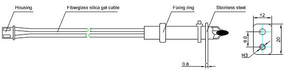 Glass encapsulated thermistor, housed in stainless steel sheath,