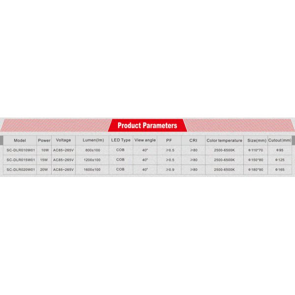 LED Model No. | SC-DLR015W01-30 | SC-DLR015W01-40 | SC-DLR015W01-60 |