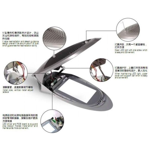 3. Patented anti-glare optic lense enable this street light give an maximum 130 degree and 140 degree light spread,with an asymmetrical polar curve.