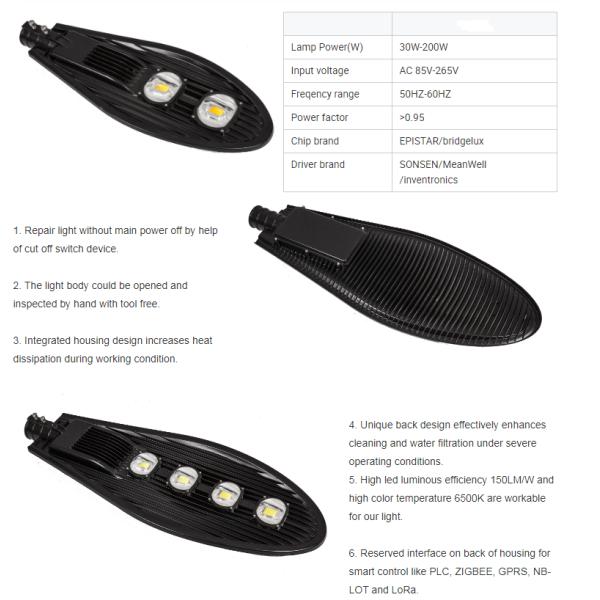 Durable 120W Outdoor COB Led street Light Black with Die Cast Aluminum material