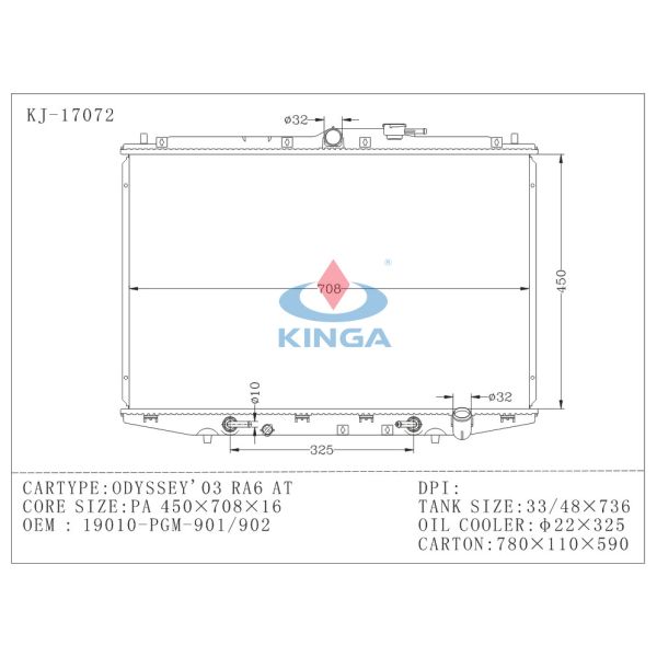 Honda Aluminium Car Radiators for ODYSSEY ' 03 RA6 OEM 19010 - PGM - 901 / 902