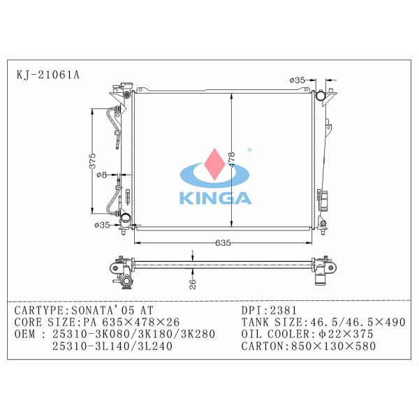 DPI 2381 HYUNDAI Heat Exchange Aluminium Car Radiator For Sonata ' 05 - AT