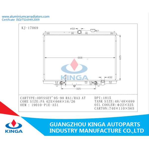 ODYSSEY'95-98 RA1/RA3 for Honda Aluminum Radiator OEM 19010-P1E-A51 DPI 1815