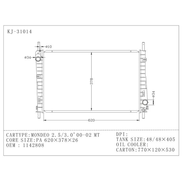 OEM : 1142808 , Frod Aluminum Radiator , MONDEO 2.5 / 3.0 ' 2000 , 2002