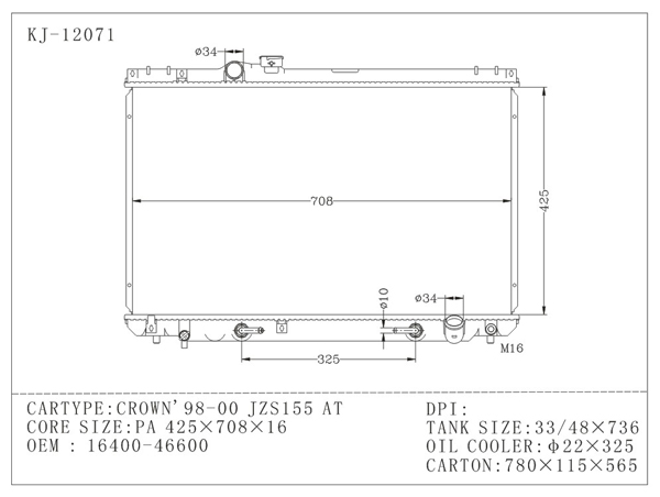 High Performence Aluminium Car Radiators Of Toyota Crown 1998 2000 JZS155 AT 16400-46600