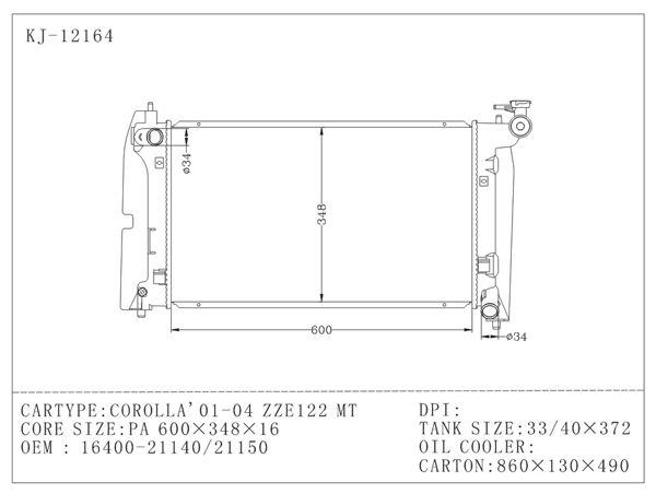 KJ-12164-PA16COROLLA 01-04 ZZE122PA16/MT