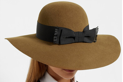 A wide-brim hat is the perfect way to frame your face. it has been made in France from felt and finished with a black grosgrain band. Wear it to reference this season's '70s mood.