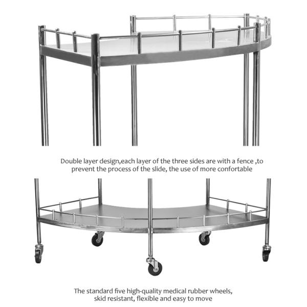 Medical Stainless Steel 304 Fan Shape Instrument Trolley With Casters