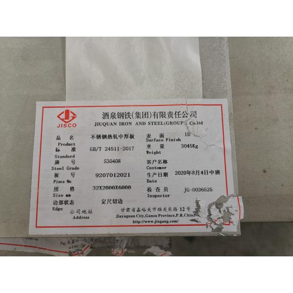 TISCO 304/304L NO.1 Finished Stainless Steel Plate | |