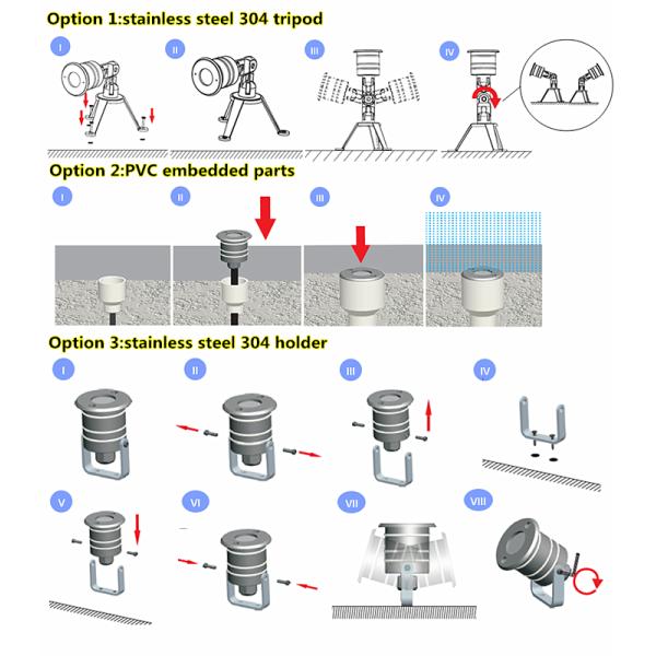 4. Installation type: PVC embedded parts, 304 stainless steel tripod or surface-mounting.