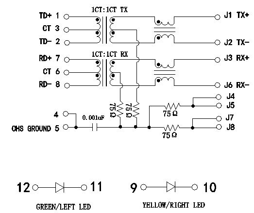 | 47F-1205GYD2 RJ45 10/100 BASE-T Jack With Magnetic Module 1CT:1CT Turns Ratio | ||