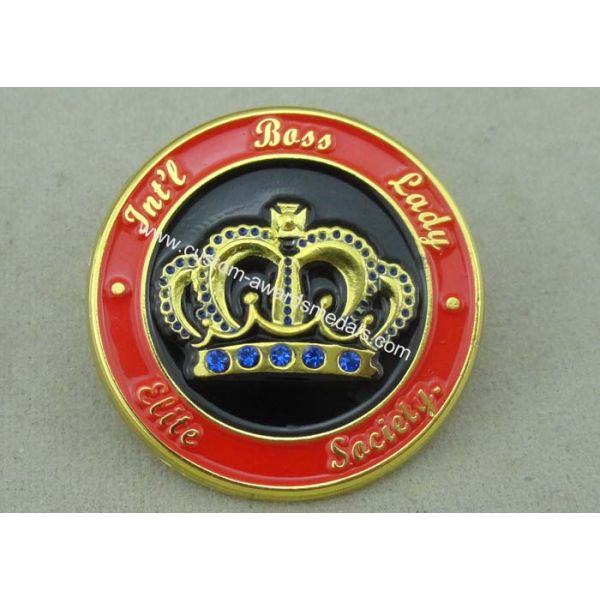 Soft Enamel Pin With Rhinestone , Zinc Alloy Pin Badge With Gold Plating