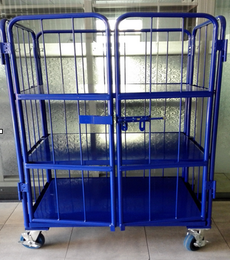 This logistics has two front doors,each door can be opened or closed,convenient for carry objects from it.Baseplate can be folded which save much space.