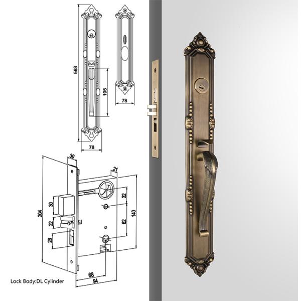 Name: Antique brass single cylinder luxury Handleset in zinc alloy