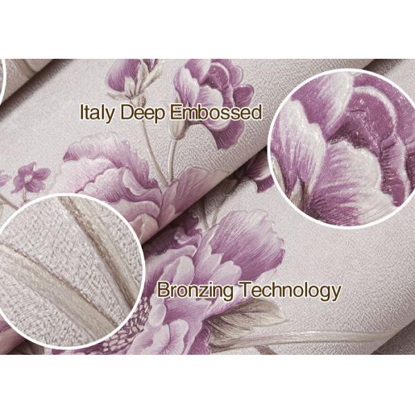Waterproof Purple Floral Rustic Wallpaper Vinyl Material for Bedroom