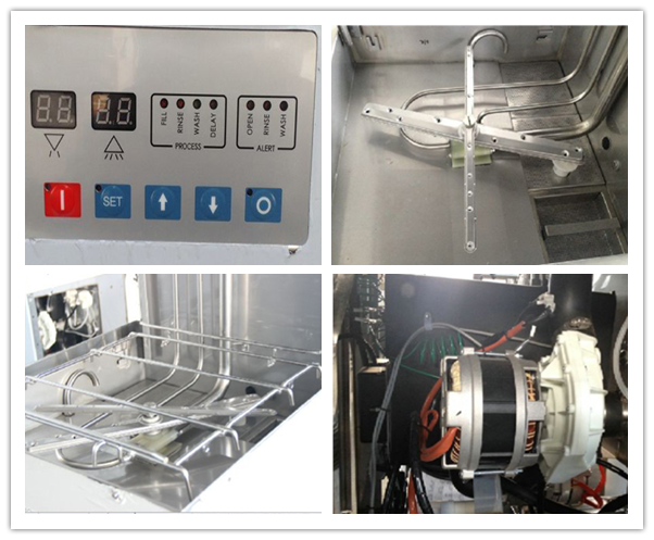 Ø Unusual design of cover closed doors, when pulled up, steam and heat will be kept inside, not releasing out of the dishwashing machine