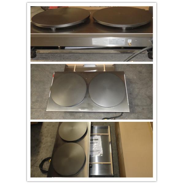 400 mm Restaurant Cooking Equipment Single Or Double Head Commercial Crepe Machine, Gas type or Electric type are optional. Round hear.