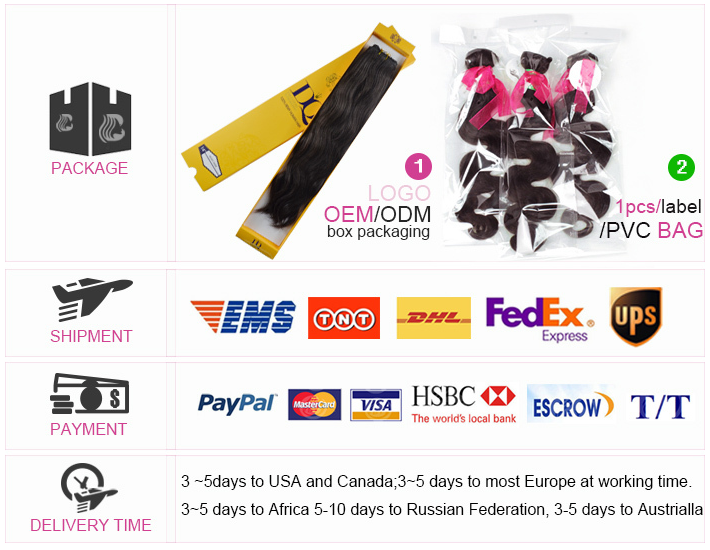 Hair Texture: | Yaki Straight, Natural Straight, Silky Straight, Kinky Straight, Small curls, 25mm Curl, Kinky Curl, Jerry Curl, Afro Curl, Loose Curl, Body Wave, Deep Wave, Super wave, Water Wave, Wet and Wavy,or as customer’s request. |