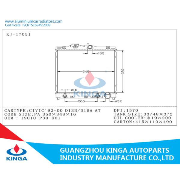 CIVIC ' 92-00 D13B / D16A 19010-P30-901 AT Honda Aluminum Radiator For Car