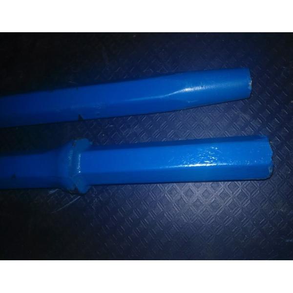 Integral drill steel rod is used by a hand held drill machine in Underground mining and for small hole drilling, equipped with small power rock drills, like air leg rock drills, hand held rock drills, etc. It can reduces the expense of impact energy, improves the drilling speed and efficiency, also it can be used for drilling bore hole diameter from 24mm to 44mm usually.