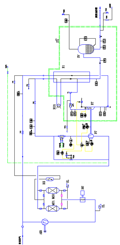 The compressed air goes through pre-cooler and molecular sieve to be purified and preliminary cooled.