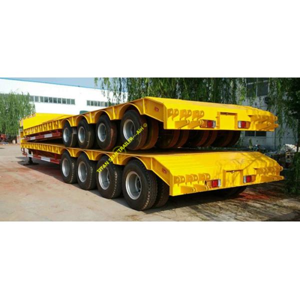 Titan 4 lines 8 axles lowboy trailer is one popular model of heavy haul trailers. It can transport heavy cargo goods, such as heavy machinery, construction project, factory equipments and transformer. The loading capacity can reach to 150 ton.
