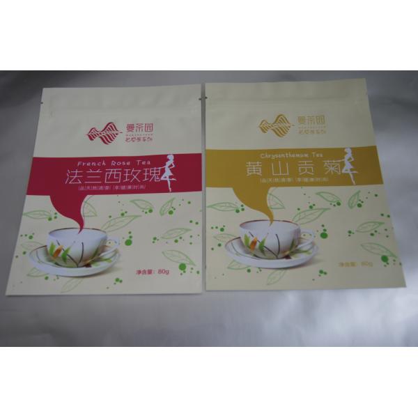 Flat Aluminum Foil Tea Bags Packaging With Zipper And Tear Notch For Chrysanthemum Matt