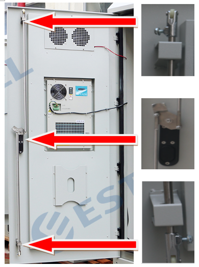 The cabinet door uses embedded structure. The door opening angle is larger than 110°and the door limit device can limit the opening angle. The lock is theftproof three point lock, supporting padlock. Each cabinet door include open door sensor, working together with the environment monitoring unit.
