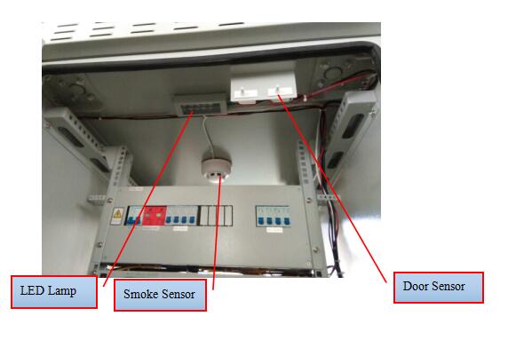6.1 LED lamp, smoke sensor and door sensor are installed at the top of the cabinet.