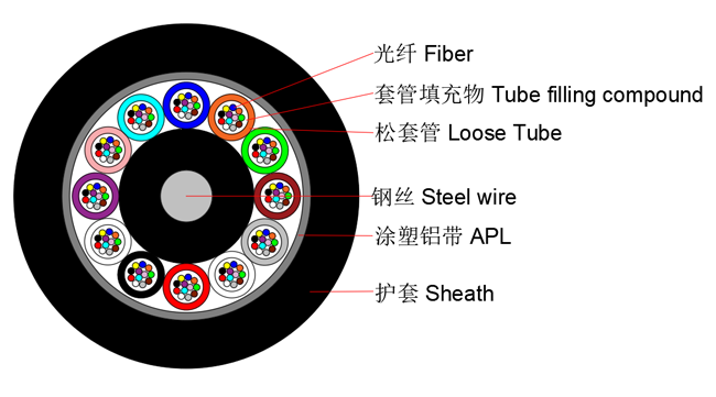 The structure of GYTA optical cable is to put 250 µ m optical fiber into the loose tube made of high modulus material, and the loose tube is filled with waterproof compound. The center of the cable core is a metal reinforced core. For optical cables with certain number of cores, a layer of polyethylene (PE) shall be extruded outside the metal reinforced core. The loose tube (and filler rope) is twisted around the central reinforced core to form a compact and round cable core, and the gap in the cable core is filled with water blocking filler. Plastic coated aluminum tape (APL) is longitudinally wrapped and then extruded with polyethylene sheath to form cable.