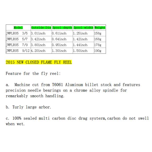 Fly fishing reel model: 3/5, 5/7,7/9,9/12