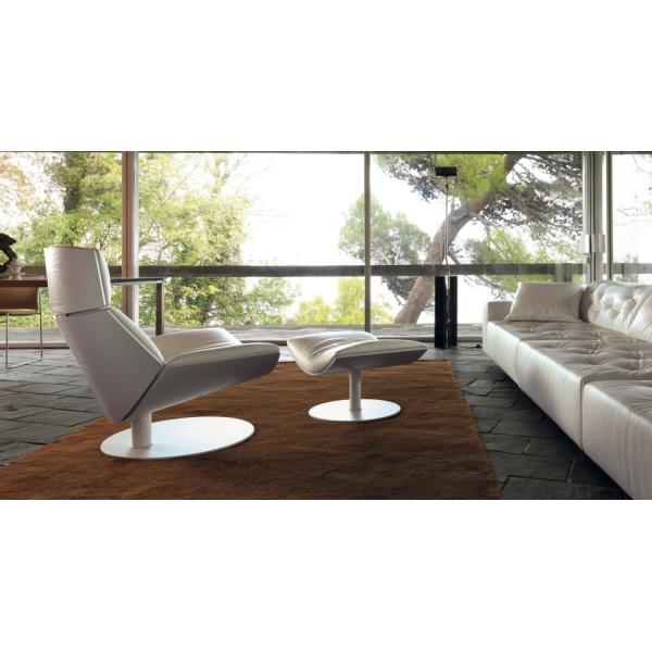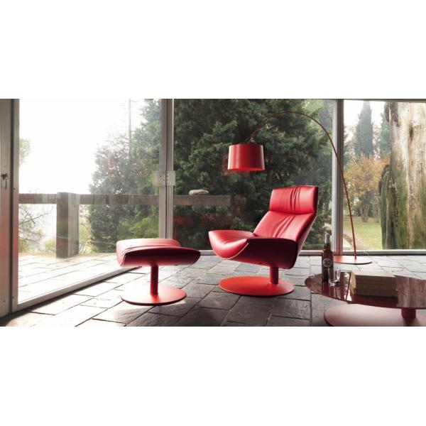MaterialsStructure in multi-playwood ash, in white, or black color or in walnut wood. Cushion: Cold-foamed polyurethane covered with full-grain leather not removable. Base: Swivel 120° (fixed for pouf) in metal, satin nickel-plated for base in walnut or in white, yellow, red or black painted metal for coloured leatherChair: 82*94*98 Ottoman: 75*48*53A protective shell that encloses a soft cushion into which you can let yourself go in total relaxation". This is how Marc Sadler defines his new Kara armchair, completed by the pouf. Kara is a perfect combination of the three fundamental values of the Desiree philosophy: Utmost comfort, high quality of materials and meticulous care over workmanship. You can purchaise Kara at Italian Furniture Design, contact us for best price.