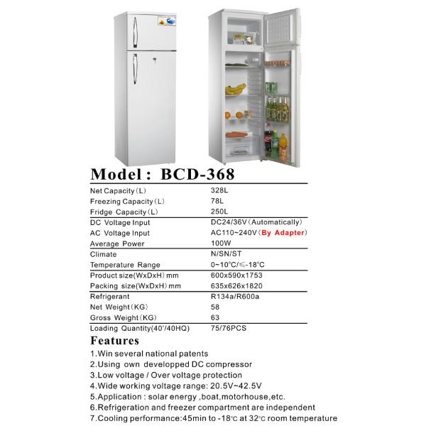 Solar/DC Refrigerator(2 door):